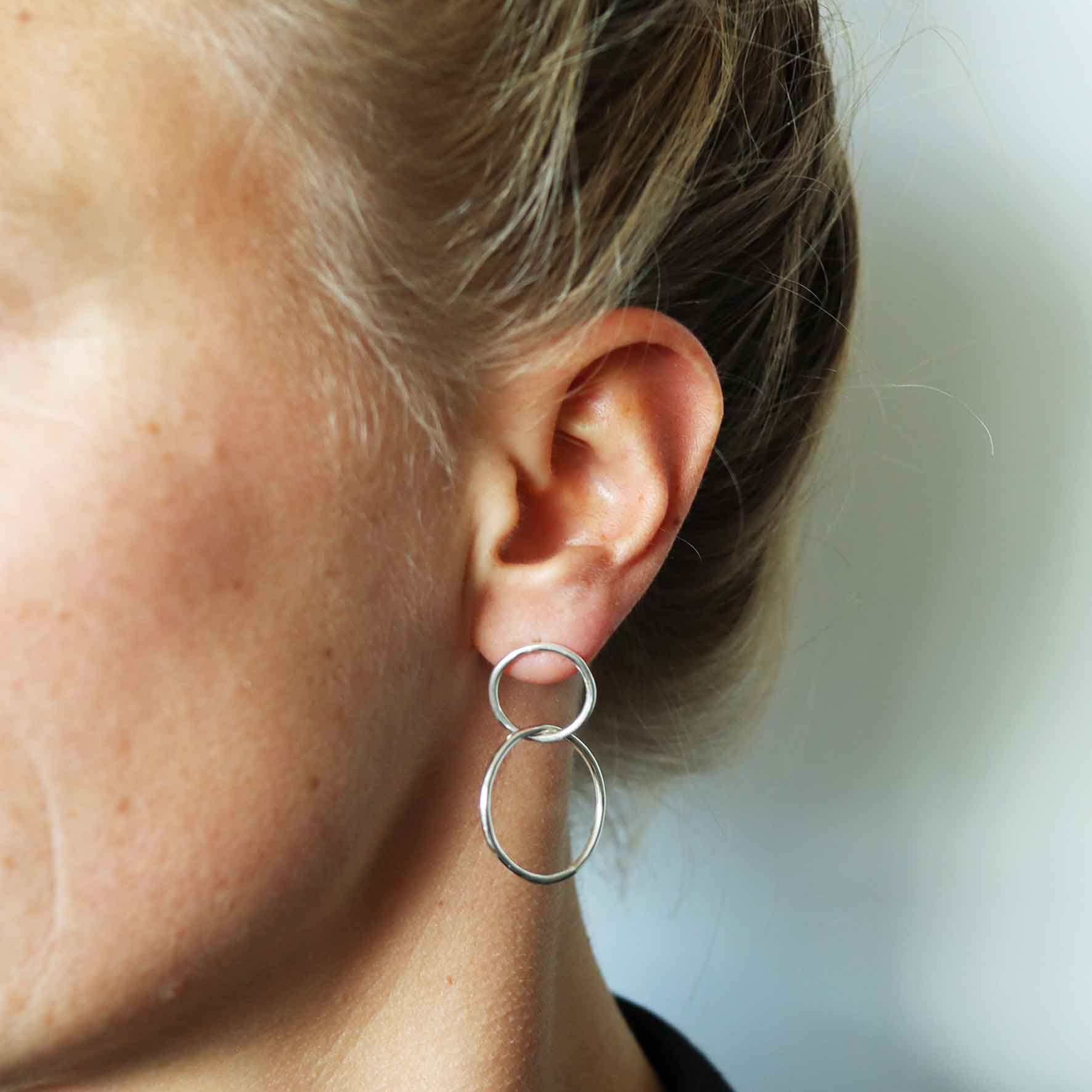the alice earrings feature two interlinked circles in a minimalist design. Light and versatile, they add a timeless touch to both everyday looks and special occasions.